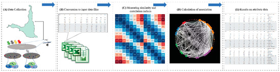 (A) Digital video recording cameras were deployed in four study lakes to collect behavior-based abundance data for each habitat they used, (B) data were then merged and converted to input data files, (C) Pearsons correlation for each study behavior was calculated for each species, (D) correlation values were used to plot an undirected networking diagram utilizing igraph and (E) results on network metrics and keystone species were derived. Please consult Rasool et al. [8]: Figure 5 as reference for a detailed explanation of data collection.