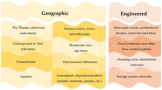 - Talling, P. London’s Lost Rivers; Random House Books: London, UK, 2011; pp. 10–50. [Google Scholar]
