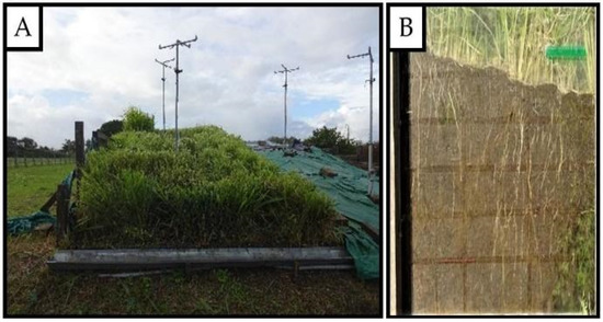 Then, half of the Cape Fear surface was plowed and sown with MC1 (Figure 2A). During this phase, MC1 was irrigated three times for a day, for a total of about 10 l/m2. The irrigation phase of the “cultivated land” lasted for 30 days. At the end of this phase, plants first began to sprout and the irrigation has been reduced to one time for a day, in the same amount as before. This irrigation helped promote the MC1 root vertical development. In fact, in this way, the roots are forced to seek water in depth.