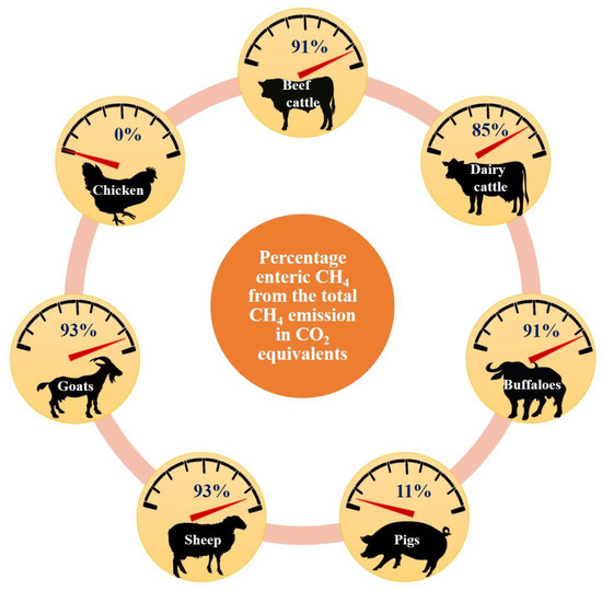 Prathap, P.; Chauhan, S.S.; Leury, B.J.; Cottrell, J.J.; Dunshea, F.R. Towards Sustainable Livestock Production: Estimation of Methane Emissions and Dietary Interventions for Mitigation. Sustainability 2021, 13, 6081. https://doi.org/10.3390/su13116081
