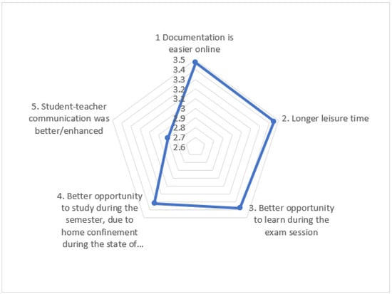 - Better opportunity to study during the semester, due to home confinement during the state of emergency lockdown (m = 3.32);