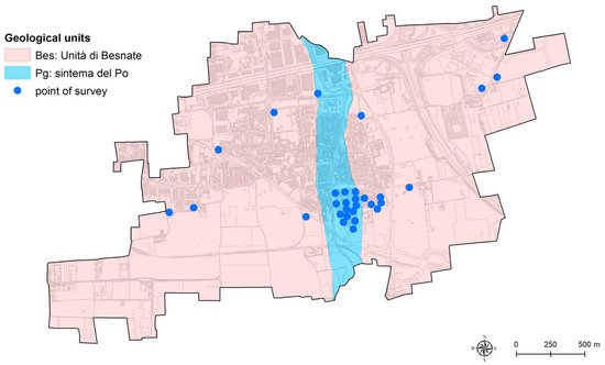 Geological units and localization of the points of survey for the municipality of Caponago.