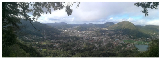 After the death of the founder of the March family, Teresópolis entered a new era characterized by the presence of heirs and the fragmentation of property into smaller farms, sites and plots, thus beginning a process of populating the region. Today the municipality of Teresópolis (Serrana region) covers an area of approximately 770 km2 (Figure 6). The homonymous town has been developing in a north-south direction within the catchment area of the Paquequer River following its direction (secundum naturam) in the shadow of the Orgaos orogenic complex (Figure 7).
