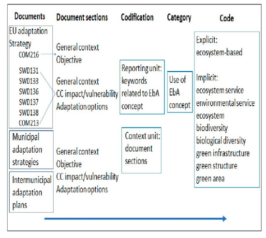 The analysis of the documents (EU’s adaptation strategy, municipal strategies and intermunicipal plans) was carried out in two stages: