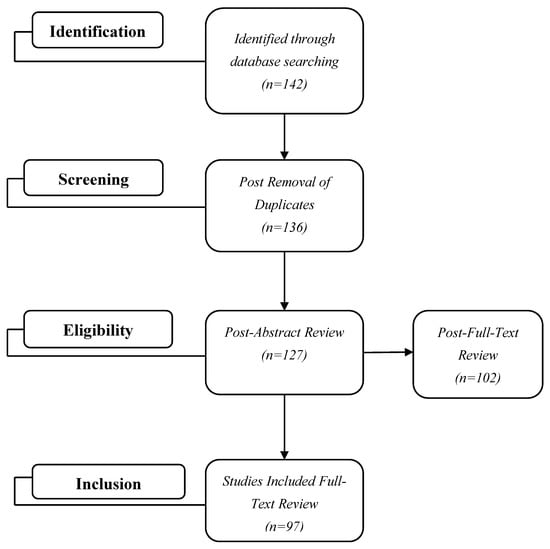 Duplicates have been excluded as part of this process, eligibility has been verified from abstracts, and the complete content of an outstanding paper has been checked in the context of the study issues for the final judgment regarding the physical internet areas under examination [27]. As per the systematic literature review protocol for this study, the 97 papers were screened and verified as valid.
