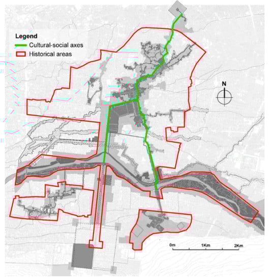 At the municipality level, the aim is to generate pilot projects in neighbourhoods on a case-to-case basis as a means of attracting private investors and creating a cultural campaign for the public recognition of the historic areas. Investment packages also need to be defined, including the projected cash flow and income, profit, interest and so on. Additionally, basic infrastructures (e.g., water, electricity and so on) that are free of charge need to be provided by relevant government agencies. The local offices formed in the targeted neighbourhoods also need to connect private investors and property owners (F-DM). Along with other agencies, the municipality is expected to provide programmes to restore the socio-cultural axes and re-establish the neighbourhoods (Figure 4), consequently connecting several important historic sites that may branch out to other adjacent zones. A general assumption is that such a linear approach to the projects can stimulate further development that mainly includes paving upgrades, façade preservation and the restoration/adaptive reuse of historic buildings, thereby injecting activities into the historic fabrics (S-SS).
