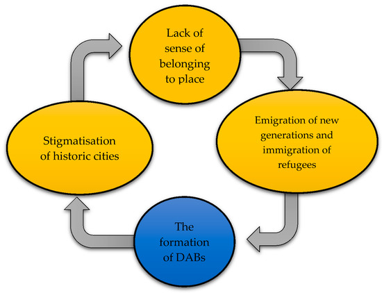 A faulty circular phenomenon may occur as a result of spatial–cultural problems, and can generate further DABs in historic cities.