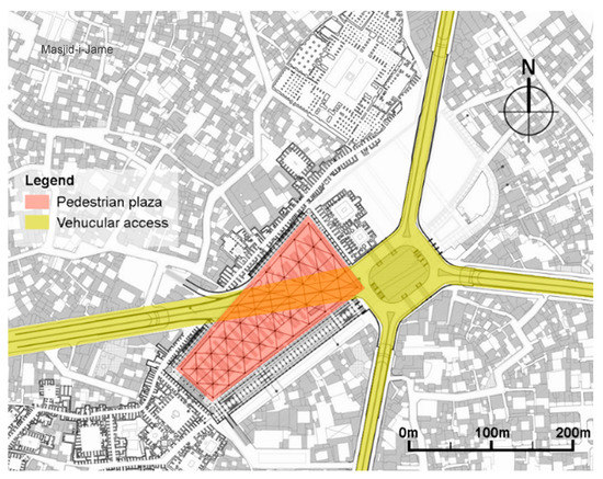 After hundreds of years of morphological consistency and organic growth, present-day Iranian cities have become subject to an unprecedented phenomenon that initially occurred at the beginning of the 20th century. The new social and economic changes eventually generated poverty, unemployment and inequality in the access to public services and infrastructure amongst the residents of historic urban areas, culminating in a swift urban sprawl both outside and on the fringe of historic cities [1,2]. The urban transformations imposed by modernity demolished the old city walls and dramatically changed the physical spatial configurations of old cities [3]. According to researchers of contemporary Iranian urbanism, the exogenous socio-spatial movements since the 1920s have reshaped the historic cities [2]. Traditional cities have been carved out and transformed under capitalism and modernity to accommodate vehicular access and modern urban functionalities (Figure 1). Present-day traditional commercial structures have lost their consistency and significance as a result of the ever-rising demand for modern modalities (e.g., vehicular accessibility), whereas contemporary city fringe developments have expanded outwards, stretching far beyond the historic centres [3].