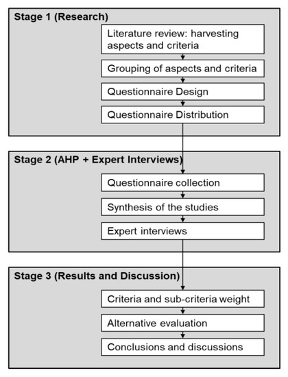 As the subject of COVID-19 evolves quickly, there are concerns for the efficiency and time span with the traditional Delphi method [78]. To further examine the criteria and sub-criteria and alternatives from an interdisciplinary perspective, focused expert interviews resembling the principle of Delphi were conducted. Such modified methods have recently been more widely used in interdisciplinary issues, including medical issues or AEC industry cases that require fast turnaround of expert opinions in the time of rapid technological or context changes [79,80].