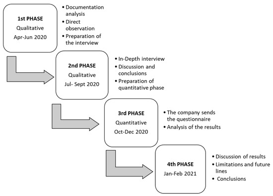A mixed-method approach was used to address data collection and the research was done sequentially, in 4 phases, as described in Figure 3.