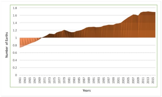 World EF (in units of ‘number of Earths’). Data from the Global Footprint Network.