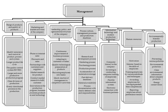 Regarding the previously mentioned, however important any of the parameters are for improving the performance of any small or medium enterprise, none of them should be considered separately [31]. According to the economic environment, social environment and situation on the market, a specific business and production management model should be established to help SMEs to survive or improve.