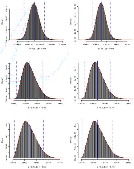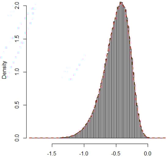 Data on VAT loss per scenarios show that VAT loss exists until the price elasticity of demand reaches a specific value. After some value of , the VAT loss changes its sign and becomes positive, meaning the VAT loss becomes an additional VAT revenue for the state budget. The source of this change is the decreasing amount of demand, and thus the decreasing sales of the product. Based on the Monte Carlo estimation, the average value of elasticity of demand at which VAT loss is equal to zero is −0.4996. The probability distribution of estimated that nullifies VAT loss is shown on Figure 2. Interestingly, the probability distribution has a thick left tail, while the right tail is thinner, and this differs from the probability distributions of VAT loss (for example, in comparison with Figure 1, ).