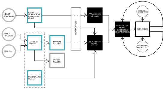 Parametric generative diagram for the urban regeneration process.