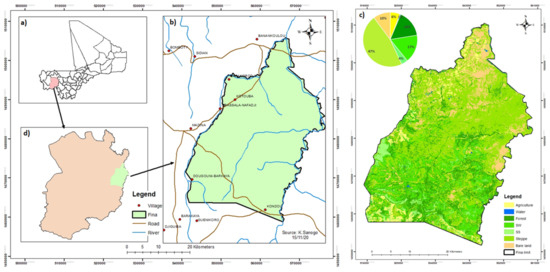 - Sanogo, K.; Abdulkadir, A.; Okhimamhe, A.A.; Diakité, C.H. Spatio-temporal Change in Land Use and Land Cover: Implications for Conservation of Fina Faunal Reserve in Mali. NJTR 2015, 10. [Google Scholar] [CrossRef]