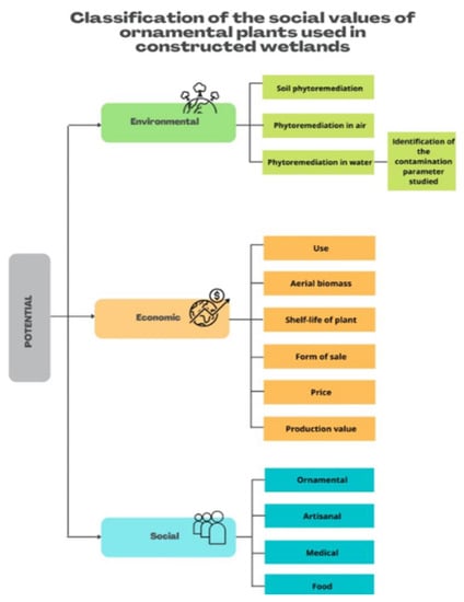 Classification of the social values of ornamental plants used in constructed wetlands [9,74].