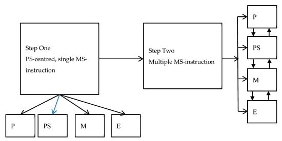 Metacognitive instruction model supported by this study. Note. MS = metacognitive strategy; P = planning; PS = problem-solving; M = monitoring; E = evaluating.