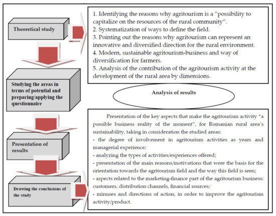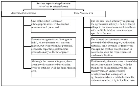 - at the level of a small group of localities where a tourist tradition is already implemented. In the conditions of modern life, agritourism can be a sustainable business, which at the same time can be a manner of diversification for farmers [30], but also a manner of diversification and support of the rural economy [31], and at the same time a possibility to spend free time with maximum benefits from the category of: landscapes and fresh air, original and healthy gastronomic products, entrepreneurial and life education. In fact, agritourism is a complex innovative model of business, a business that stimulates the development of global competitiveness. Farmers, through their ingenuity, sell farm products on new market segments (the tourism ones) to increase income [32], in other words they develop a family but traditional business, although with many questions to be answered (see Figure 2), but overall it remains the activity that can link agriculture and tourism in a sustainable way [33,34,35].