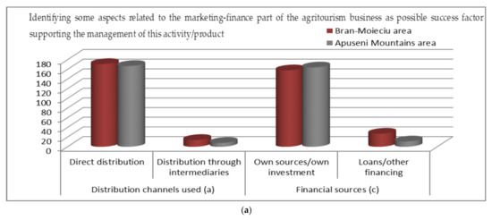 - Identifying some aspects related to the marketing-finance part of the agritourism business: customers, distribution channels, financial sources, in other words possible success factors supporting the management of this activity/product, from the point of view of the owners, the identified aspects being shown in Table 6 and Figure 13a,b.