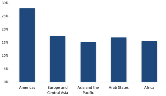 Worldwide, the economic contraction has led to a catastrophic hit to the global labor market. Millions of people are losing their jobs or facing reductions in their working hours. As many countries adopt strict quarantine policies, most companies have implemented an indefinite hiring freeze and many businesses have been forced to close [53]. The global job losses are estimated to be 495 million in the second quarter of 2020, a considerably larger decline than the 195 million estimated in April for the same quarter [55], reflecting the worsening situation in many parts of the world. According to the last ILO Monitor (2020), 94% of the world’s workers are currently facing a workplace closure measure in their countries or a decrease in their working hours (Figure 2). The sectors that have seen the largest increase in unemployment are those that require physical presence at the workplace, like the service sector, where these employees tend to be younger and female [56]. Therefore, the pandemic is also compounding existing inequalities, disproportionately hitting women and the most vulnerable population groups [52].