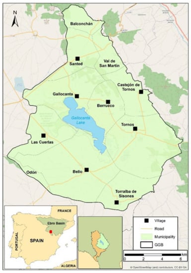 - San Román, J. Establecimiento de las Normas de Explotación de la Unidad Hidrogeológica “Gallocanta” y Delimitación de los Perímetros de Protección de la Laguna; Confederación Hidrográfica del Ebro: Zaragoza, Spain, 2003. [Google Scholar]