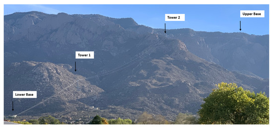 Figure 6 offers a general view of the tramway structure and its location on the mountain while Figure 7 shows descriptive plan and elevation views of the Sandia Peak Tramway. Opened in 1966 after 24 months of construction, the Sandia Peak Aerial Tramway is an iconic structure of the city of Albuquerque and one of the most known attractions in New Mexico. It is located on the northeast edge of Albuquerque and connects the city side foothills of the Sandia Mountains with its crest. The Tramway ascends vertically 3819 feet (1164 m) on a 2.7 mile (4.34 km) cable in just 15 min. The cable is supported by two towers; the cable span between Tower 2 and the upper base is the third longest Tramway cable span in the world spanning 7720 feet (2353 m). This is also the longest Tramway in the United States. When the experiment was run, the tram cars operated daily from 9 AM to 9 PM.