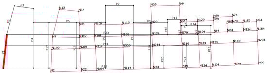 The observed building was modeled as an isolated unit due to insufficient data on neighboring buildings. In order to roughly assess the effect of neighboring buildings on the observed building, the vulnerability index proposed in the articles [62,63] is used. The index is based on five categories depending on the height of the surrounding buildings, the position of the building in the unit, the mismatch of floor heights, differences in material characteristics between buildings and differences in the areas of openings on the facade walls. This method was developed as an upgrade to the vulnerability index based on the ten parameters described in [64]. According to the mentioned five parameters, the buildings in the aggregate have a minimal impact on the observed building, and it can be assumed that the modeling of the building is as isolated as on the safe side.