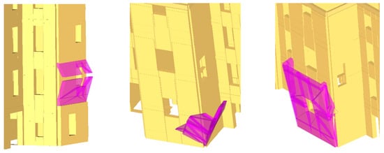 Another important piece of information is that the studied building is a part of a masonry building aggregate, which is not rare in Zagreb and other European cities. The behavior of buildings in the aggregate is extremely complex, where many parameters affect their response during an earthquake. Moreover, buildings at the ends of aggregates are often more severely damaged than those inside aggregates during earthquakes [57,58]. Modeling of the entire aggregate or, at least, adjacent buildings is recommended. Adjacent buildings can be modeled as mutually independent, mutually interconnected by the same walls, or mutually interconnected by various connections that accurately simulate real coherence. Those connections transfer axial and/or shear load between adjacent buildings in aggregate and they can be modeled as linear or non-linear elements [58,59,60]. Due to the lack of data on neighboring buildings, modeling of only the observed building is often resorted to. This is on the safe side in the case of a unit inside the aggregate when deformations are observed, but there is a risk of misinterpretation of the failure mechanism [61].