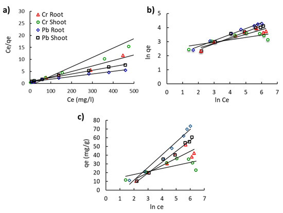 | Freundlich | ln qe = ln KF + 1/nf ln ce | qe is the of bio-sorbed ions amount at equilibrium (mg/g); Ce is the bio-sorbate equilibrium ions concentration (mg/L); KF and nf are Freundlich constants related to the bio-sorption capacity and bio-sorption intensity, respectively |