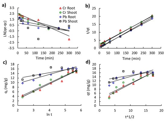 | Pseudo-First-Order | Ln (qe-qt) =ln qe- K1t | qt is the bio-sorbed metal ions amount at time t, qe, is the bio-sorbed metal ions amount at equilibrium (mg/g). k1 (min−1) is the first-order reaction rate constant |