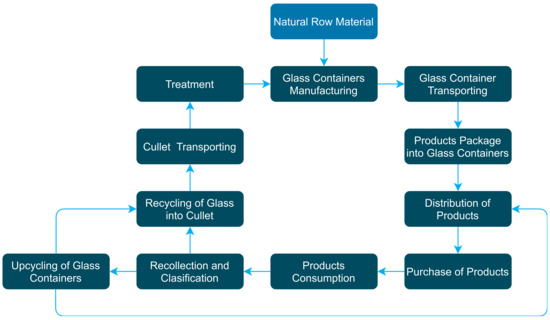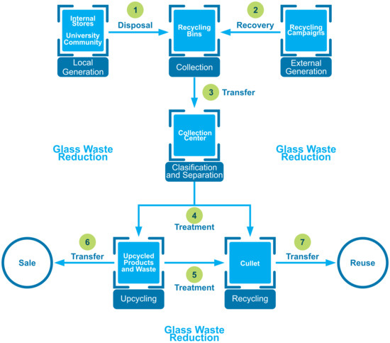 According to the objective of zero glass waste reduction, it is necessary to consider all processes related to glass bottle upcycling and recycling. A comprehensive analysis of these involved in glass waste management allows us to design the proposal.