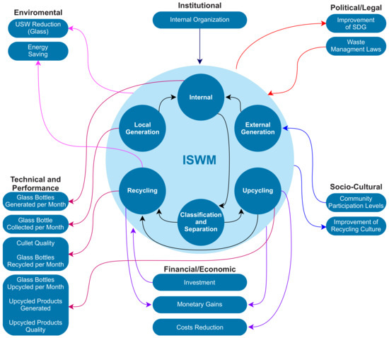 Glass bottle upcycling generates little glass waste. The proposed solution for a sustainable glass recycling culture considers an ISWM due to the dimensions and principles involved. The following steps are used for the ISWM approach.