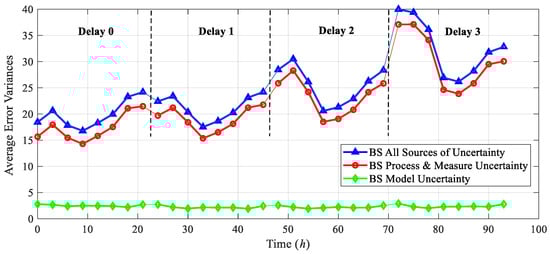 Figure 12. Average decomposition of the three sources of uncertainty and the total error of the four-day ahead predictions.