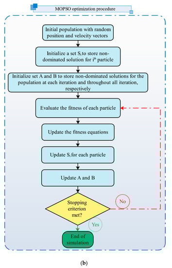 (a) Schematic diagram of the modeling and optimization process, and (b) MOPSO flowchart.