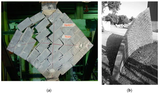 The behavior of the diagonal collapse (Figure 1a), which allows us to define the strength referred to horizontal stresses, is very different between reinforced masonry panels and the traditional unreinforced panels. In fact, in unreinforced panels, breakage is common and occurs in the mortar layers; however, the increase of the cracking state is progressive in reinforced panels as a result of the clamping mechanisms between the basalt blocks and the steel bars. In summary, we can conclude that the proposed construction system is well suited for use in seismic areas due to the ductility requirement.