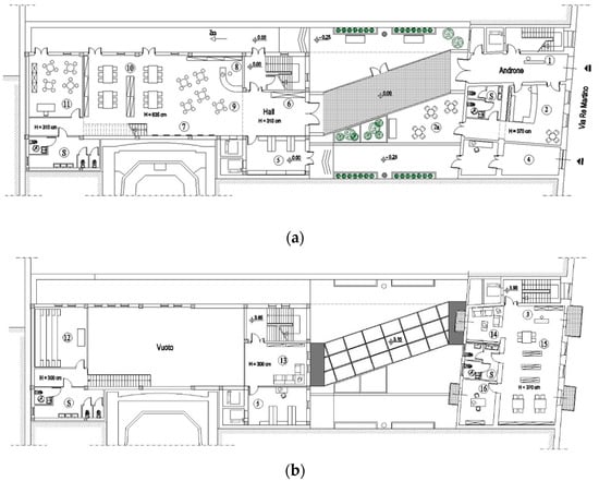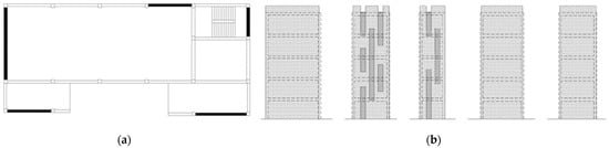 In the case study, since it is a radical intervention involving the redesign of the facade, the concentrated bracing system through five bracing panels was adopted. These are symmetrically arranged in the plane in perimeter position in order to stiffen the existing structure in the two directions without creating torsional effects and in correspondence to closed panels without openings (Figure 5).