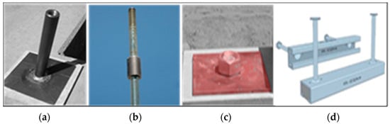(a) Tubular rod welded to the plate, (b) threaded sleeve, (c) plate and pre-compression nut, (d) Halfen profile.