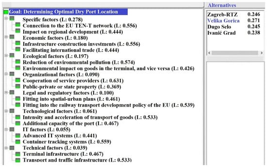 The results of selecting the optimal dry port location of the Seaport Rijeka using the AHP methodology and the software tool, Expert Choice.