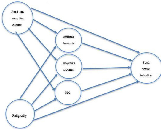 There is also some evidence that the culture could directly or indirectly affect food waste intention [8]. This study assumes that subjective norms could play a role in the relationship between food consumption culture and food waste intention. Hence, it is expected that the food consumption habits by the society make individuals behave in a certain way which in turn affect their intention to food waste. Based on all the above arguments, the following hypotheses are proposed: