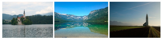 Bled (left), Bohinj (middle), and Bitnje (right)—three landscapes with clearly expressed representativeness.