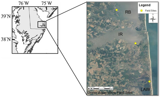 - Rossi-snook, K.; Ozbay, G.; Marenghi, F. Oyster (Crassostrea virginica) gardening program for restoration in Delaware’s Inland Bays, USA. Aquac. Int. 2010, 18, 61–67. [Google Scholar] [CrossRef]