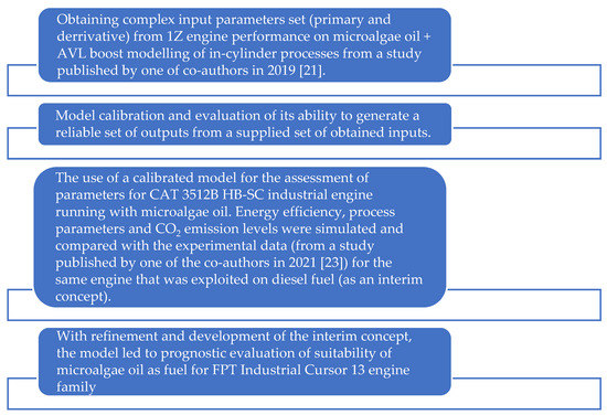 A simplified scheme, known as an ‘experiment planning chart’, for this investigation is outlined in Figure 1. Below is a description of the basic steps in this research process. A reliable set of CI engine parameters that could be transferable to the entire family of industrial engines for a possible switch to pure microalgae oil was obtained to examine factors that may contribute to the acceptance of or resistance to this carbon-neutral type of fuel.