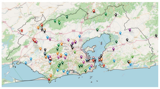 To prepare the workshop, UFMG’s group (Federal University of Minas Gerais) was responsible for producing the entire collection of data for each MR (metropolitan region) and transforming it into spatial information, thus guaranteeing everyone would receive the same set of around 40 thematic maps used to support the analysis of the 10 systems, as well as for building ideas. All the data were retrieved from free platforms, 2 of them international (satellite and terrain images) and 15 national ones, all of which underwent adjustments for cartographic projection, spatial cropping, attribute association, and caption organization to achieve specific goals, as well as standardizing them. Aside from the work involving the data itself, geoprocessing models were applied to transform them into geospatial information, according to at least one of the following procedures: (a) Taxonomic classification (classes of captions created according to specific goals); (b) Spatial classification (identify areas of influence or in which occurrences were concentrated); (c) Mathematical classification (employs models according to indexes or algorithms); (d) Hierarchical classification (occurrences per degree of pertinence to the goals of the study).