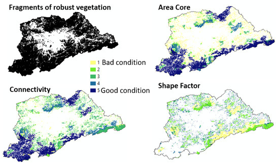 As the project had to contain innovations, aside from the listed ideas, participants should also be able to achieve goals related to carbon credits. For the year of 2050, it was necessary that they proposed a minimum of a 30% increment in areas with robust vegetation cover, which could be obtained by investing in the conservation of strategic areas, the expansion of areas with potentialities, or even by creating new areas located in positions of particular interest. As they were required to consider both the 2035 and 2050 scenarios, they had to make decisions regarding the goal until 2035, and by 2050, they had to achieve the minimum requirement of 30%. To support their decisions, participants had access to thematic maps regarding the surface temperature, distribution of robust vegetation cover and protected areas, and landscape ecology metrics per vegetation fragments (core area, stepping-stones, and shape factor) (