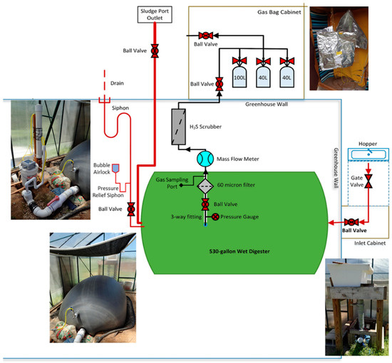 - Miller, K.E.; Grossman, E.; Stuart, B.J.; Davis, S.C. Pilot-Scale Biogas Production in a Temperate Climate Using Variable Food Waste. Biomass Bioenergy 2020, 138, 105568. [Google Scholar] [CrossRef]