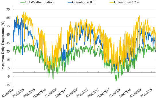 | Digestion Type | ID | Feedstock | Duration (d) | Maximum Daily Air Temp (°C) | Fed (kgVS d−1) | Average OLR (gVS L−1 d−1) | Methane Production Rate (gCH4 gVS−1 d−1) | Biogas CO2:CH4 | Input pH | Output pH | Input Temp (°C) | Output Temp (°C) |