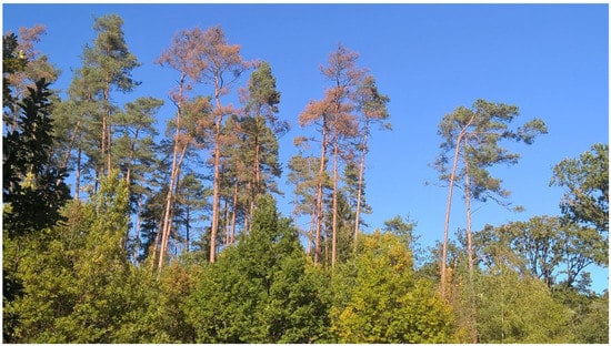 - Mette, T.; Kölling, C. Die Zukunft der Kiefer in Franken: Eine Zeitreise in den Klimawandel. LWF Aktuell 2020, 2, 14–17. [Google Scholar]