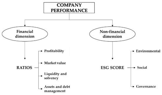 To quantify the financial dimension of company performance, we used ratio analysis based on financial statements for the 2011–2020 period; the ESG score for the same time frame, calculated by Refinitiv, was used to assess the non-financial dimension of performance, aimed at the sustainable development of the company.