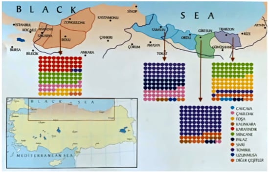 The georeferenced map of the different Turkish hazelnut varieties [].