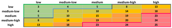 - Baybutt, P. Guidelines for designing risk matrices. Process Saf. Prog. 2018, 37, 49–55. [Google Scholar] [CrossRef]